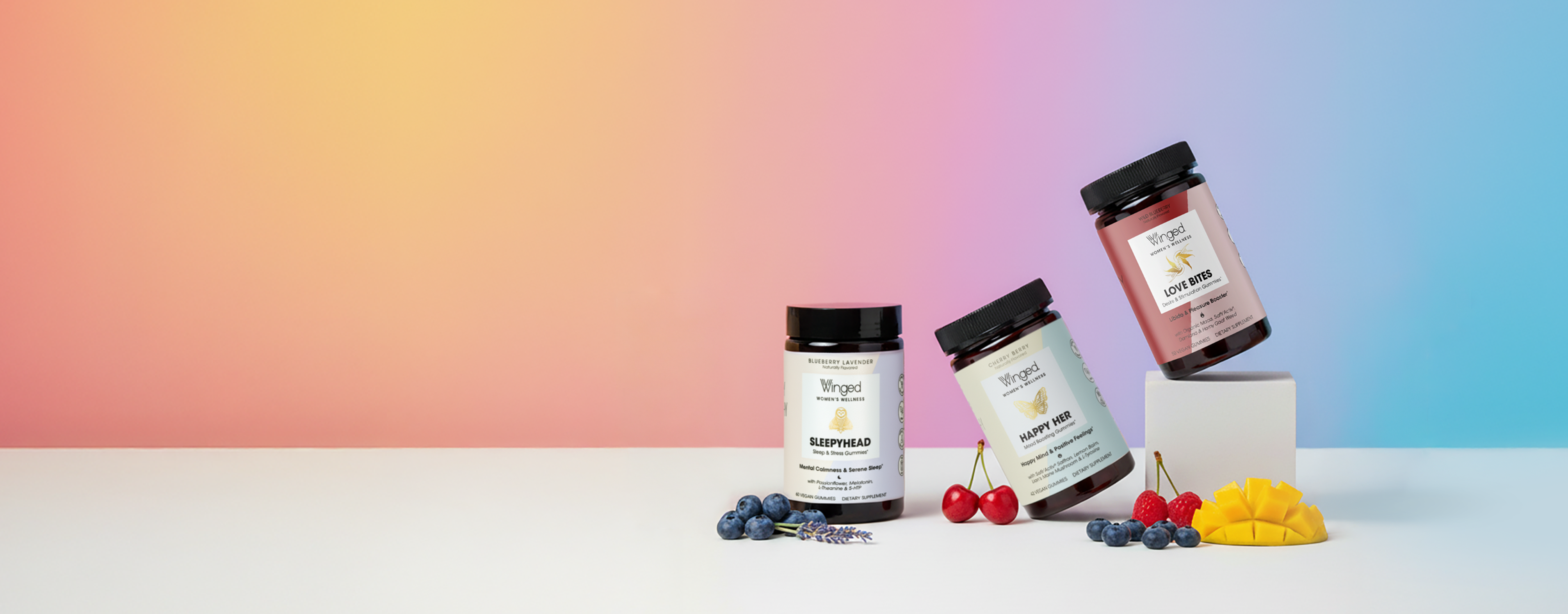 Winged specializes in wellness formulas to help women feel their best & attain balance in their lives. All our formulas feature unique ingredient combinations to include added hormone balancing and stressΒ modulating benefits.Β