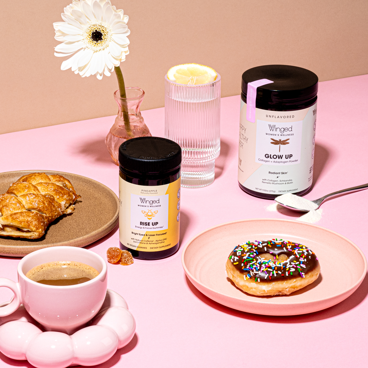 Glow Up promotes radiant, glowing skin, lustrous hair, and strong nails while also protecting against the damaging effects of the stress hormone cortisol, which leads to collagen breakdown. Glow up comes in an unflavored powder that mixes easily in any beverage, hot or cold.